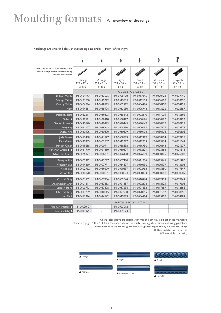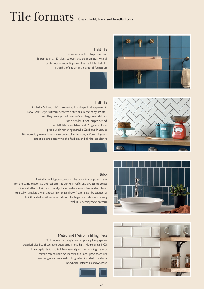 Versatile Formats: Includes field tiles, metro/brick shapes, mouldings, skirtings, internal corners, and decorative pieces—giving designers flexibility to build refined, layered schemes.