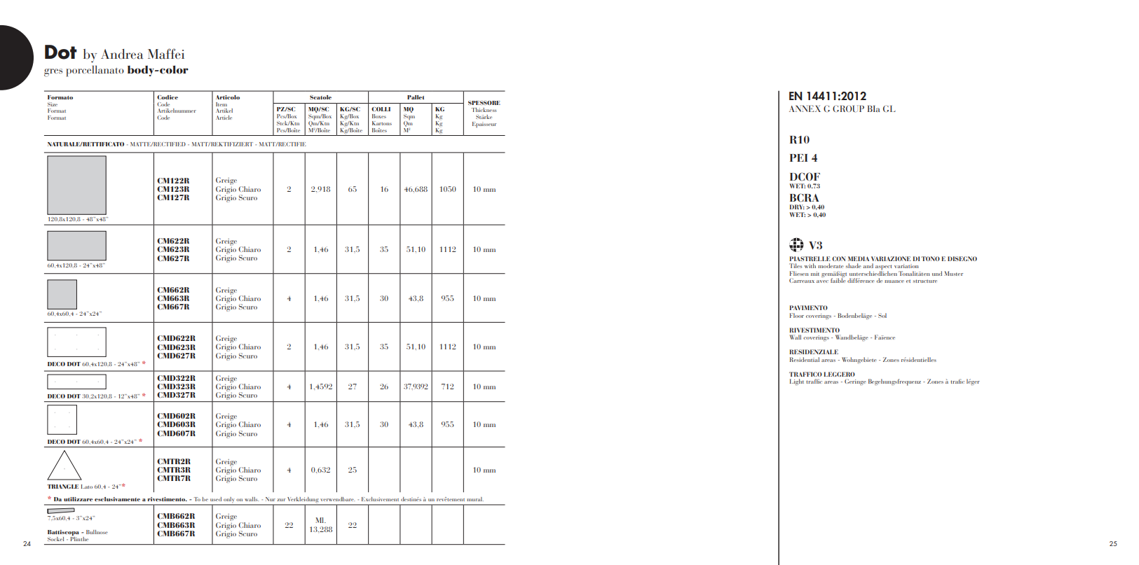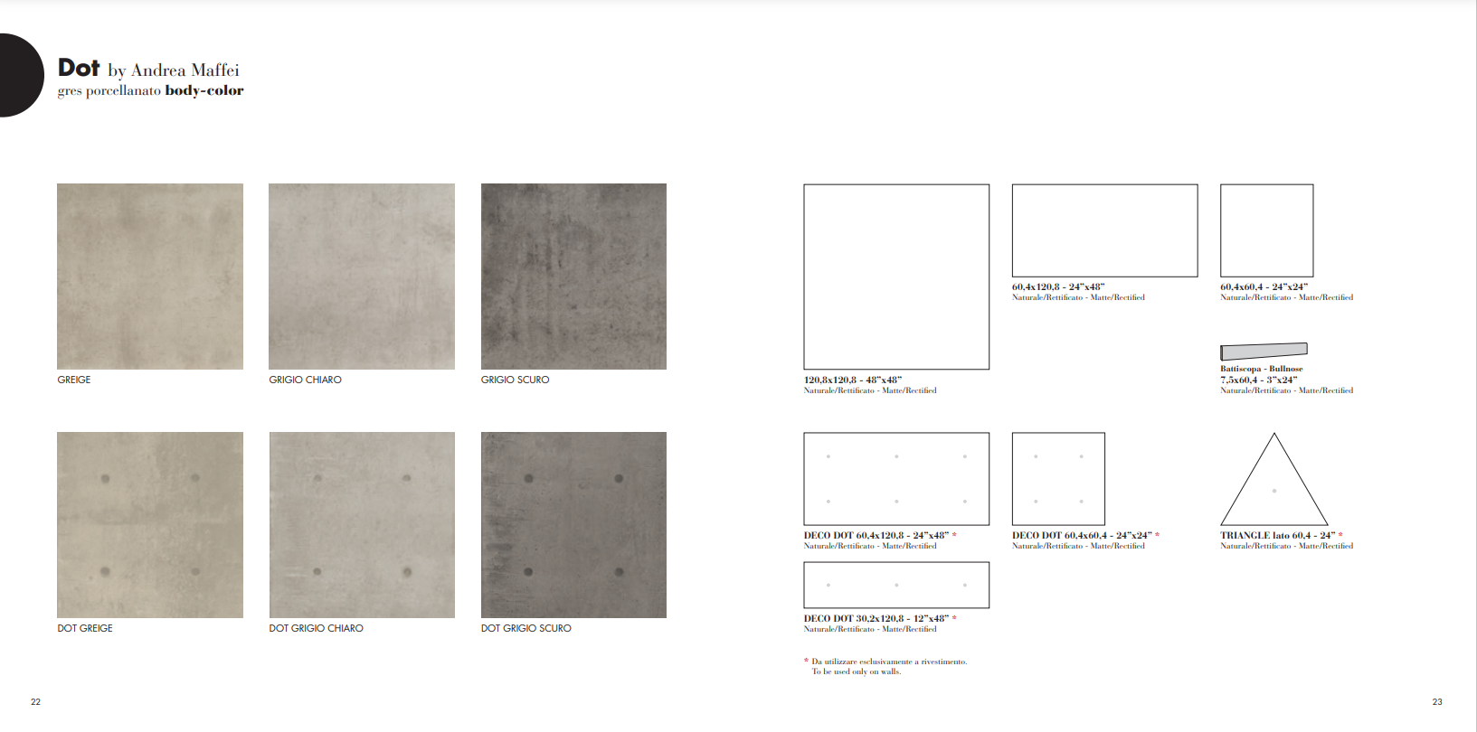 | Color | Greige, Grigio Chiaro, Grigio Scuro |