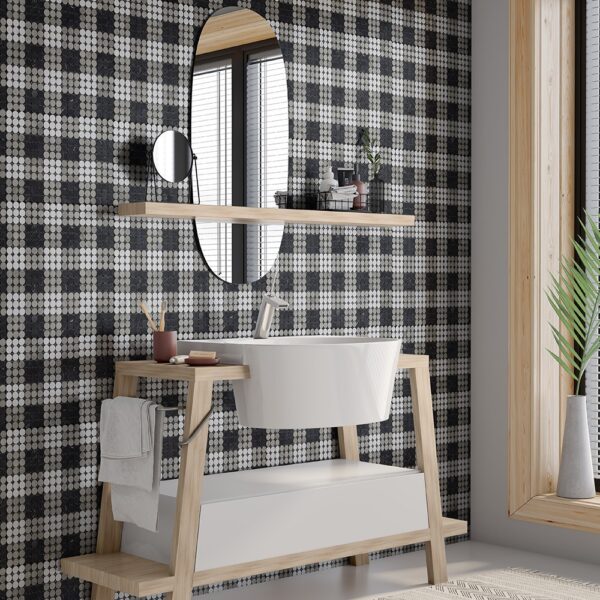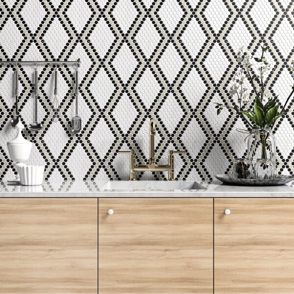 Choose from solid colors of field mosaic or whimsical patterns including diamond, honeycomb and even plaid. These mosaics are available in white, grey, and black marble tiles. We carefully designed this mosaic to be closely-set in order to ensure the pieces won’t be swarmed in a field of grout. Instead, the focal point remains on the mosaics’ playful patterns and organic, neutral colors.