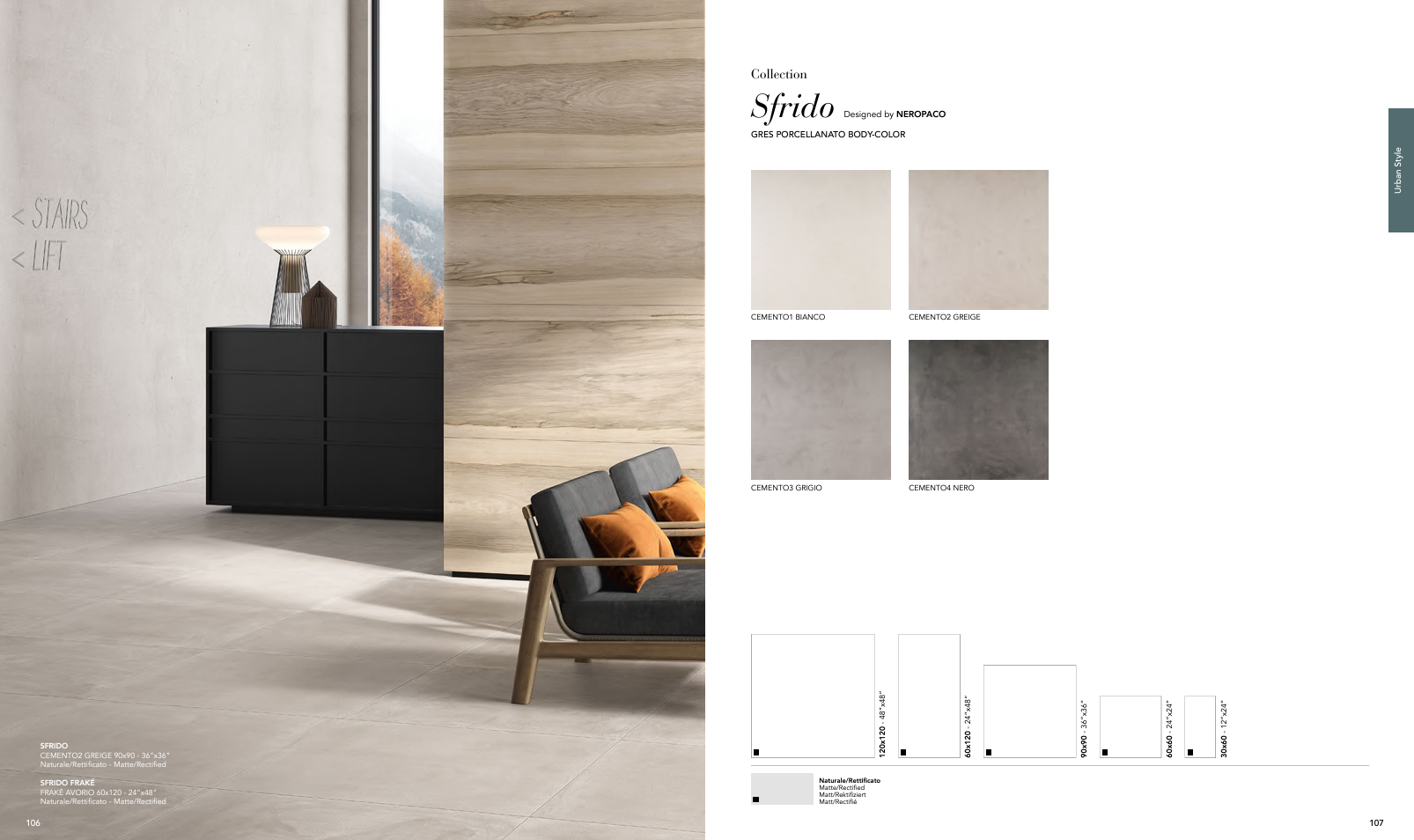 | Item | Cemento Bianco, Cemento Greige, Cemento Grigio, Cemento Nero, Frake Naturale, Frake Avorio, Frake Beige, Frake Tortora, Deco Sfrido Bianco, Deco Sfrido Greige, Deco Sfrido Grigio, Deco Sfrido Nero, Mosaico – Bianco Beige, Mosaico – Greige Avorio, Mosaico – Grigio Naturale, Mosaico – Nero Tortora |
