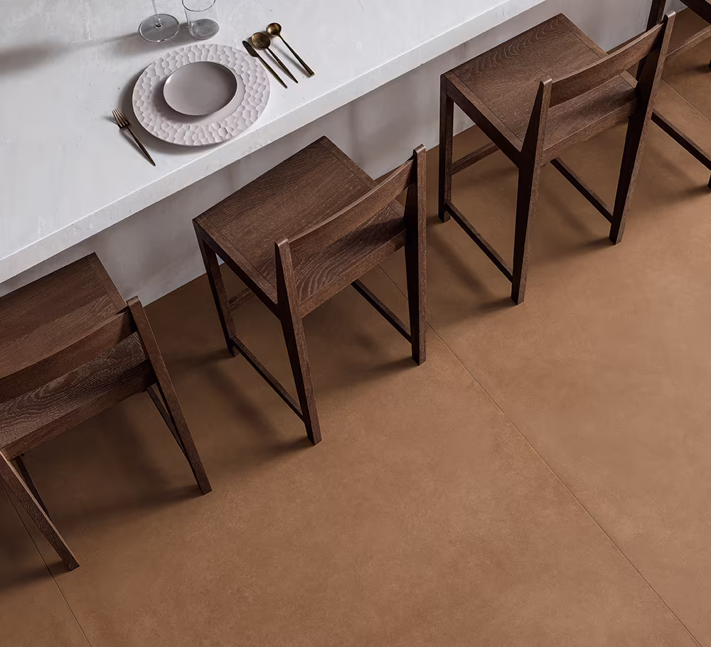 Terrae combines a modern take on the classic essence of terracotta with the strength and practical appeal of latest-generation porcelain stoneware. In bright, vibrant, engaging, regenerating colours and delicate, discreet, subtle, inviting shades, strikingly decorative earthy tones are back in the forefront of interior design trends. A profound desire to reconnect with nature shapes a range of colours that embody the pleasure and the thrill of designing living spaces with a timeless charm, able to convey an immediate sensation of well-being. A warm touch that reveals the endless shades of colour offered by the pigments and precious minerals of the earth, in a porcelain stoneware collection able to capture the attention and bring a vibrant, exotic allure to settings.