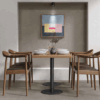 Modern concrete-look tiles with a soft color palette and playful decor.