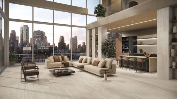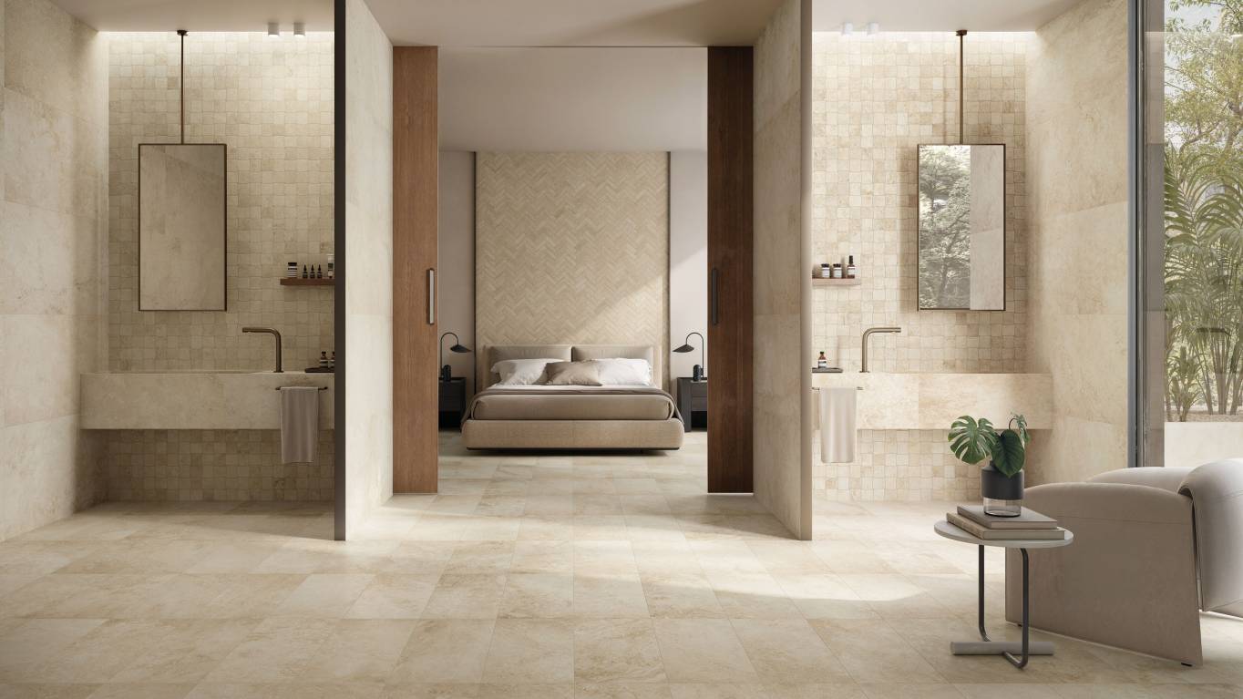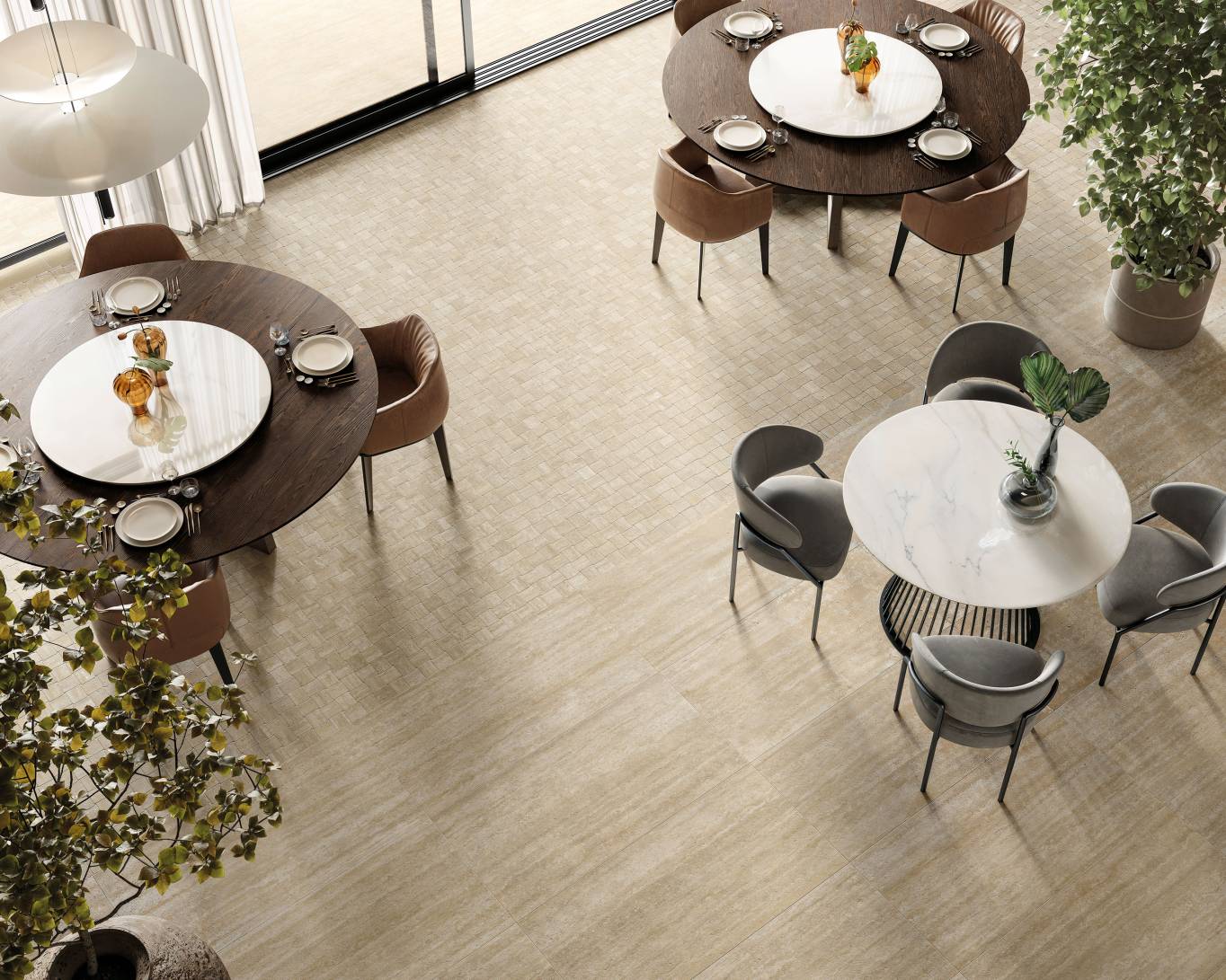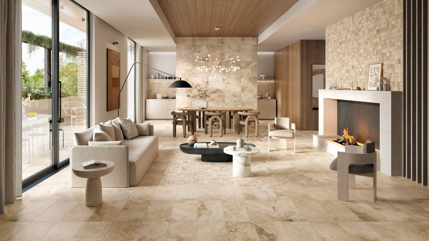 Trail reinterprets travertine’s beauty through two unique aesthetic expressions made with cutting-edge technology. The result is a surface that combines sophistication, superior performance, and the allure of the natural material for both indoor and outdoor applications.