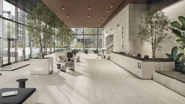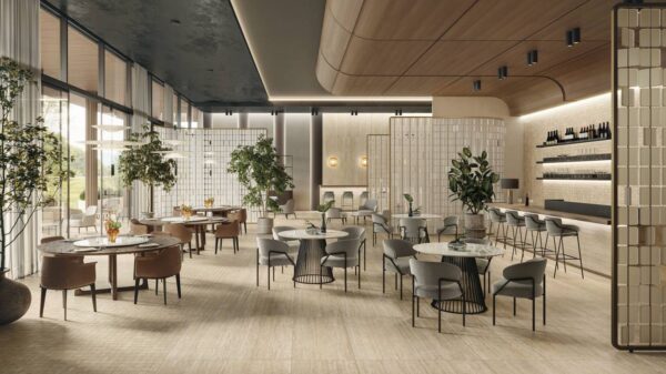 Porcelain mosaics complement the Trail Refined and Trail Vibrant surfaces, enhancing wall and floor design through an extra layer of sophistication, providing patterns that elevate the aesthetic of any space. Landmark’s Veneer World Atelier introduces a new, tactile dimension to wall surfaces. The three-dimensional texture Atelier Bamboo adds depth to spaces, transforming walls into captivating architectural elements.